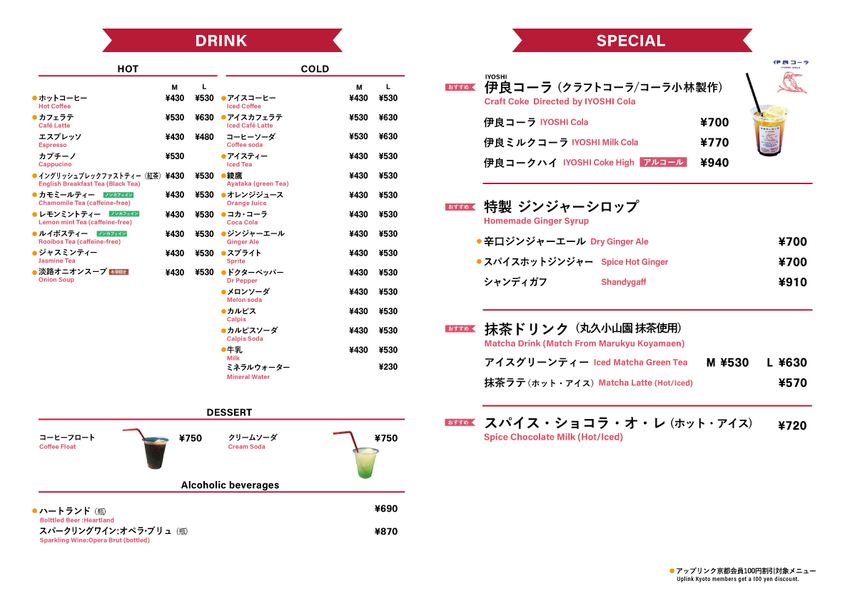 アップリンク会員特典として一部ドリンクを割引価格でご提供
