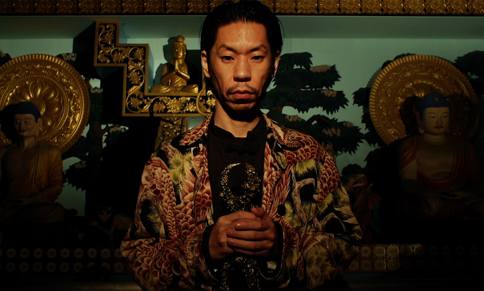 出演は、ラッパーの呂布カルマ、お笑い芸人のシソンヌじろう、作家の稲生平太郎、グラビアアイドルの桐山瑠衣ら、独特のキャスティング。加えて仏教や太平洋戦争、満州国などの偽史的要素も盛り込み、近年の映画には無い全く特異な世界を作り上げている。監督は、カナザワ映画祭2020「期待の新人監督」に選出された京都大学在学中の弱冠22歳の新鋭・保谷聖耀。この〈ネオSFサスペンス〉とも言うべきミュータントが、現代日本映画をその光で真っ白に更新するだろう。