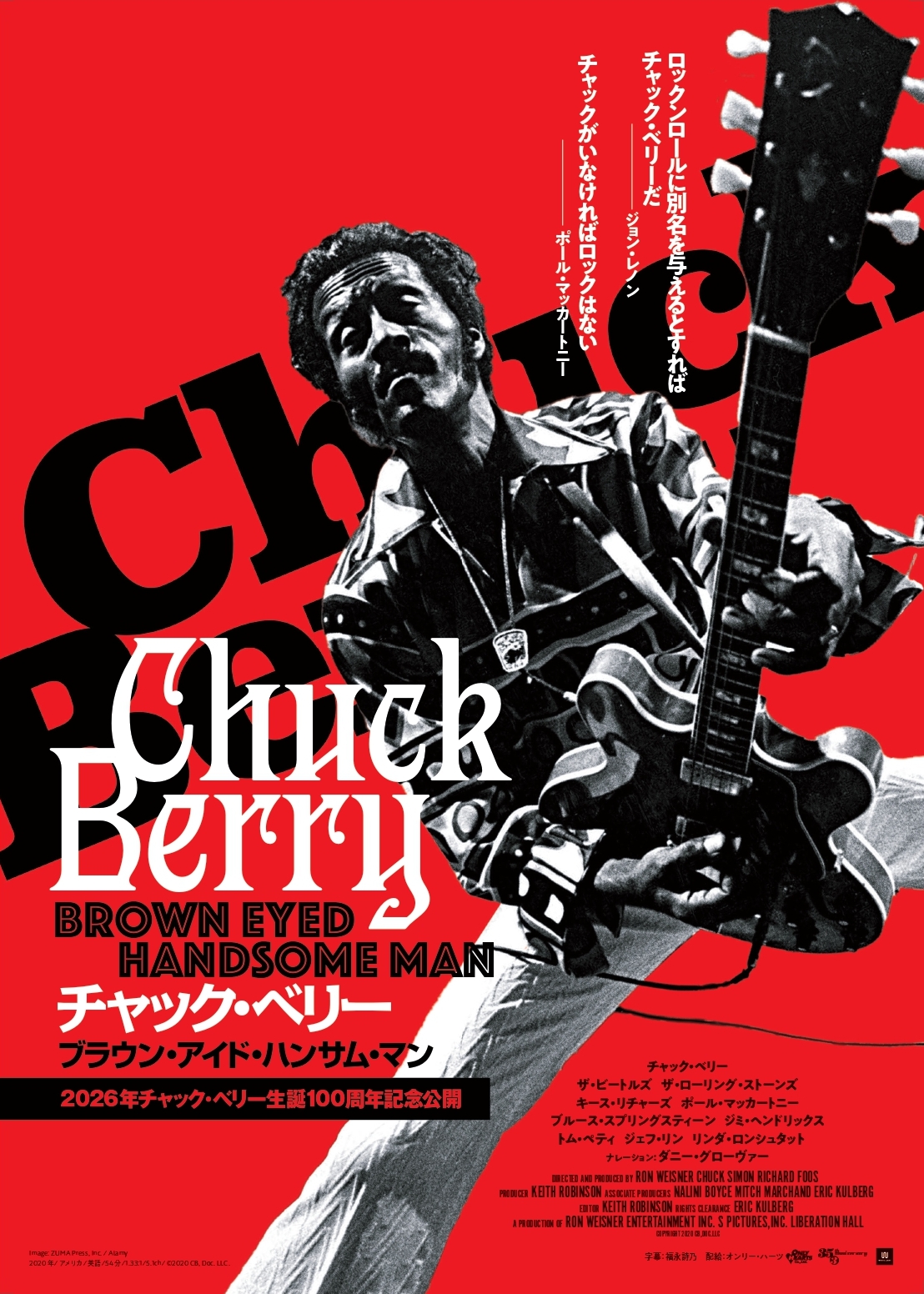 「ロックンロールの父」の異名をもつロックンロールの創始者で、人種や世代の壁を越え、後続のアーティストと文化・社会に圧倒的な影響を及ぼしたチャック・ベリー(1926-2017)へのトリビュートとして、PBS(アメリカの公共放送)のために制作されたドキュメンタリー。本作は、チャック・ベリーの代表曲を、彼自身はもちろん、彼から絶大な影響を受けた、ビートルズ、ローリング・ストーンズ、ジミ・ヘンドリックス、キース・リチャーズ、ポール・マッカートニー、ブルース・スプリングスティーンなどのロック・レジェンドたちが演奏する貴重な映像を集めたもの。それらは、アーティストやその遺族からの許可を得て収集され、多くがデジタルリマスターされた。ナレーションは、『カラーパープル』『リーサル・ウェポン』シリーズ等の名優ダニー・グローヴァー。