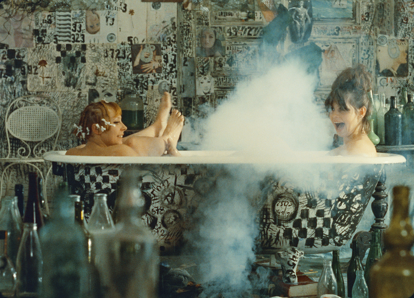 マリエ1とマリエ2は、人形の真似をし、姉妹と偽り、男たちを騙しては食事をおごらせ、嘘泣きの後、笑いながら逃げ出す。部屋の中で、牛乳風呂を沸かし、紙を燃やし、ソーセージをあぶって食べる。グラビアを切り抜き、ベッドのシーツを切り、ついにはお互いの身体をちょん切り始め、画面全体がコマ切れになる。色ズレや、カラーリング、実験的な効果音や光学処理、唐突な場面展開など、あらゆる映画的な手法が使われ、衣装や小道具などの美術や音楽のセンスも抜群。60年代チェコ・ヌーヴェルヴァーグの傑作。