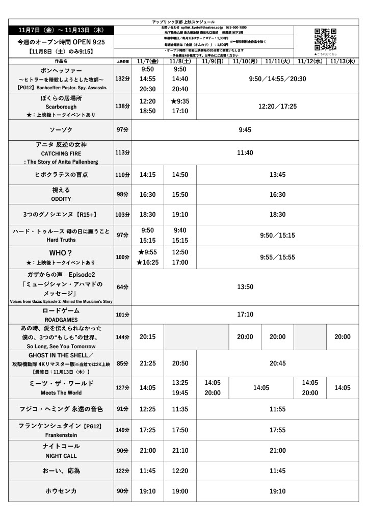 ▶オープン時間 9:25 [11月8日(土)のみオープン時間 9:15]