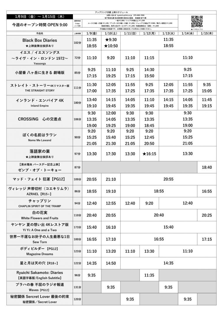 1月9日(金)~1月15日(木)上映スケジュール
